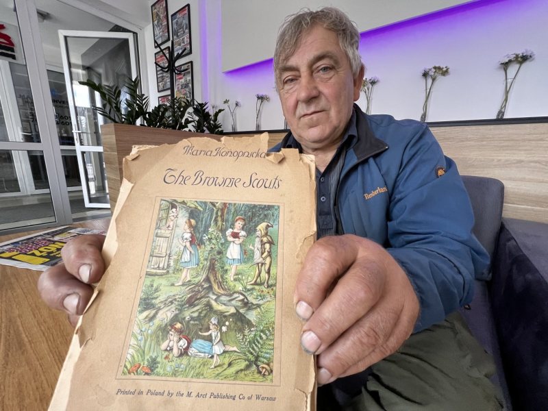 - W moje ręce wpadła, wygrzebana właściwie ze śmieci niepowtarzalna książka Marii Konopnickiej „The Brownie Scouts”, wydana w 1929 roku, po angielsku – mówi. - Jest to jeden z pięciu takich oryginalnych egzemplarzy w Polsce. Dwa znajdują się w Bibliotece Narodowej, po jednym mają uniwersytety: Jagielloński i Śląski, a piąty mam ja. Książkę znalazłem w kurniku w Tylkowie. Jest trochę porwana, ale generale ma dobry stan.