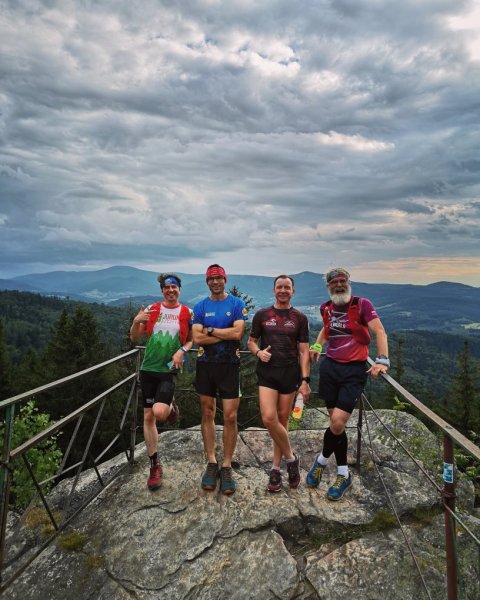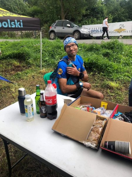 - Prawie 8 tys metrów przewyższenia, przez Kotlinę Kłodzką, Góry Stołowe, Wielki Szczeliniec, Śnieżnik, miasta, miasteczka, Kudowę, Bardo, start i meta oczywiście w Lądku – mówi Rafał Kot. - W tym roku na starcie 235 biegaczy, z czego do mety dotarło tylko 85. Czemu tak mało? Na trasie były dosyć ciężkie warunki i to wcale nie upał. Tym razem największą trudnością były miejscami spore ilości błota oraz pogoda - nękające drugiego dnia deszcze i ulewy. U mnie dodatkową trudnością już praktycznie od samego początku biegu były kłopoty z żołądkiem. Nie mogłem jeść wszystkiego, co powinienem, przez co w pewnym momencie biegu ogarnęła mnie straszna senność, znużenie i zmęczenie. Na szczęście na kolejnym punkcie mój support zorganizował mi porządne vege jedzonko, które lubię i siły wróciły w sam raz na finisz. A w tym roku moim supportem byli - ponownie Rafał Wilczek i debiutujący w tej roli Marcin Jaźwiecki.