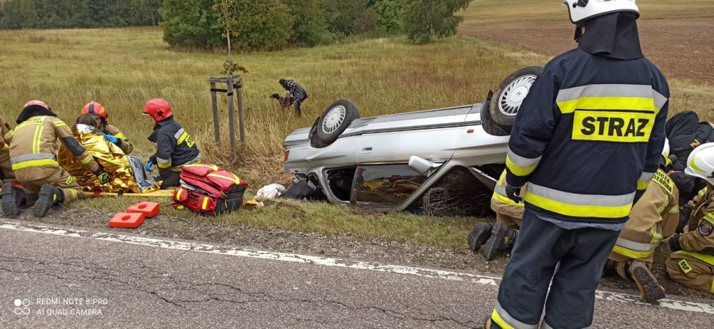 W sobotę. 10 września w Dźwierzutach przy ulicy Szczycieńskiej dachowała honda. Ranne zostały dwie osoby. 33-letnia kobieta z raną głowy i bólami w klatce piersiowej trafiła do szpitala. 39-letni kierowca miał lekkie otarcia.