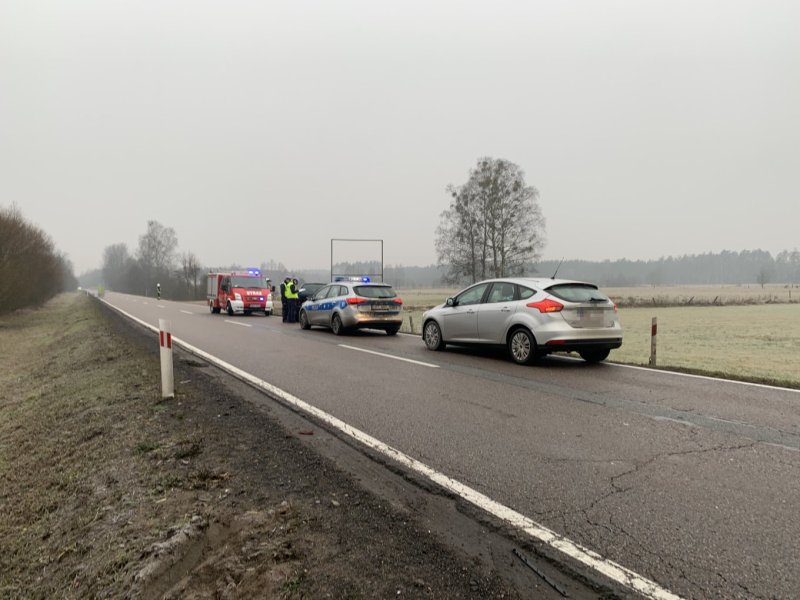 Do wypadku doszło przed godziną 7 na trasie Wielbark – Szczytno. Ze wstępnych ustaleń policji wynika, że 43-letni kierowca jadący renault zaczął nagle hamować, bo zauważył na swoim pasie rowerzystę, który nie miał oświetlenia. Auto wpadło w poślizg i zjechało na przeciwległy pasu ruchu. Zderzyło się z jadącą z naprzeciwka hondą.