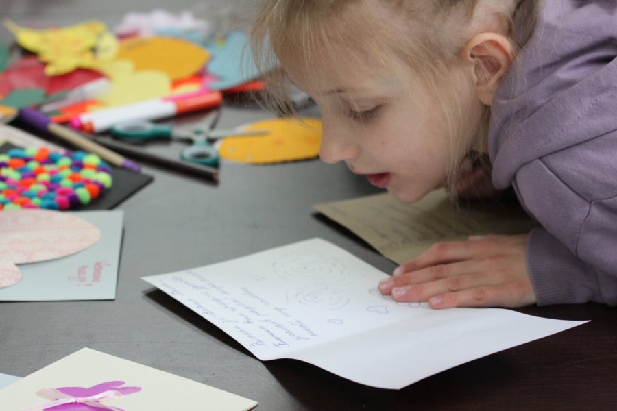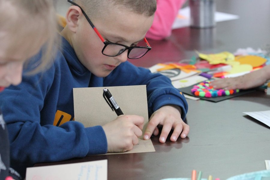 Było też pisanie życzeń w ręcznie robionych kartkach wielkanocnych. Kartki zostaną wysłane do podopiecznych ŚDS w Piasutnie oraz DPS w Spychowie.
