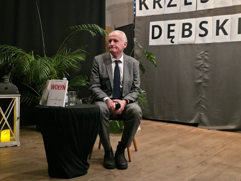 Pretekstem do rozmowy była książka „Nic nie jest w porządku. Wołyń – moja rodzinna historia”, w której Dębski wraca do losów swojej rodziny i osobistych doświadczeń związanych z tragiczną historią Wołynia. Autor mówił o pamięci, odpowiedzialności i potrzebie nazywania rzeczy po imieniu, bez uproszczeń i przemilczeń.