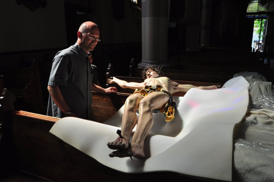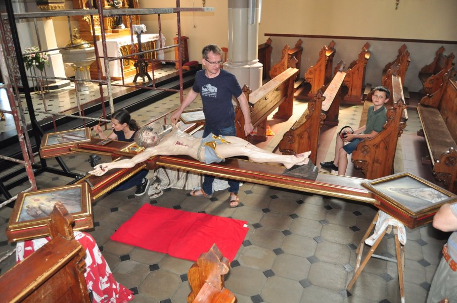Tak, trafił do nas w czwartek, ale na razie jest ukryty. Myślę, że oficjalnie zostanie odsłonięty, i znajdzie się na swoim właściwym miejscu dokładnie 14 września podczas Święta Podwyższenia Krzyża. Krzyż waży ponad 350 kg, ma 4 metry wysokości i 3 szerokości. Sama figura pana Jezusa ma 162 centymetry. Bez wątpienia jest to dzieło sztuki. Do krzyża dołączone jest 9 obrazów. Jedna strona krzyża przedstawia to życie ziemskie Jezusa Chrystusa, zapowiedź męki, cierpienia... Druga strona przedstawia życie niebiańskie, po zmartwychwstaniu Chrystusa.