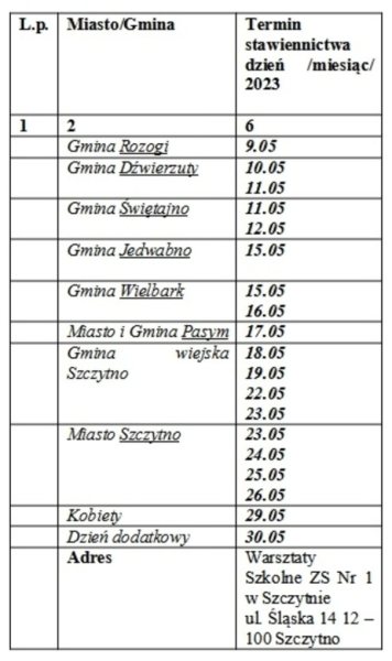 W naszym powiecie trwa kwalifikacja wojskowa. Do stawienia się przed komisją zostali wezwani mężczyźni urodzeni w 2004 r.; mężczyźni urodzeni w latach 1999–2003, którym nie nadano kategorii zdolności do czynnej służby wojskowej; osoby, które w latach 2021 i 2022 zostały uznane przez powiatowe komisje lekarskie za czasowo niezdolne do służby wojskowej ze względu na stan zdrowia. Kwalifikacja potrwa do końca maja. Odbywa się ona w szkolnych Zespołu Szkół nr 1 w Szczytnie.
