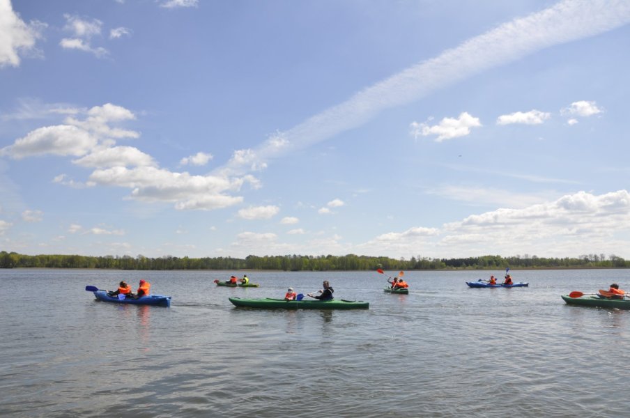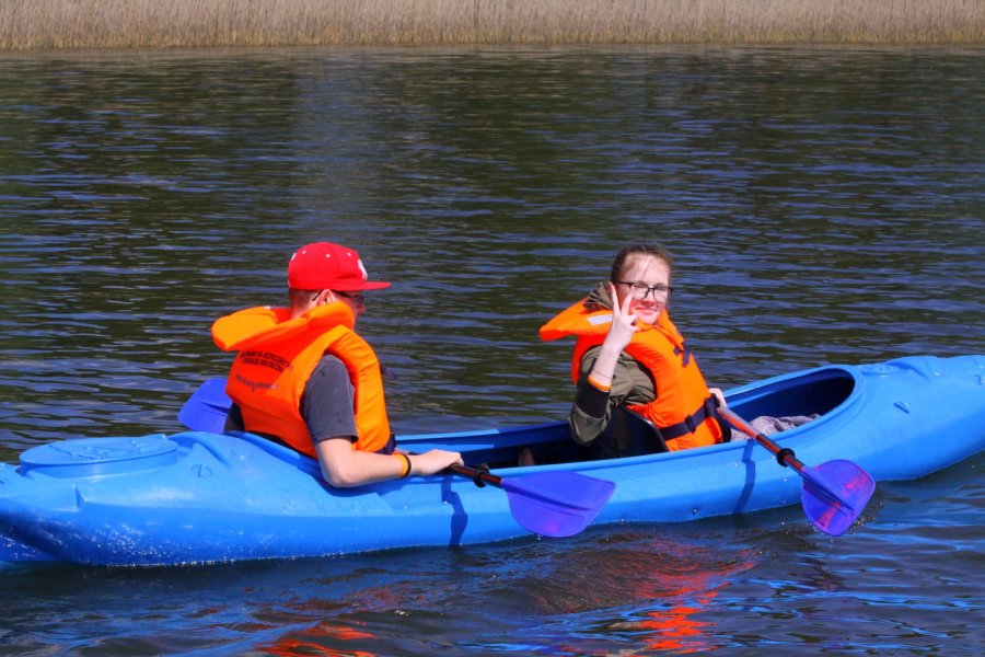 W wydarzeniu wzięło udział kilkanaścioro dzieci. Pływano w kajakach dwuosobowych.