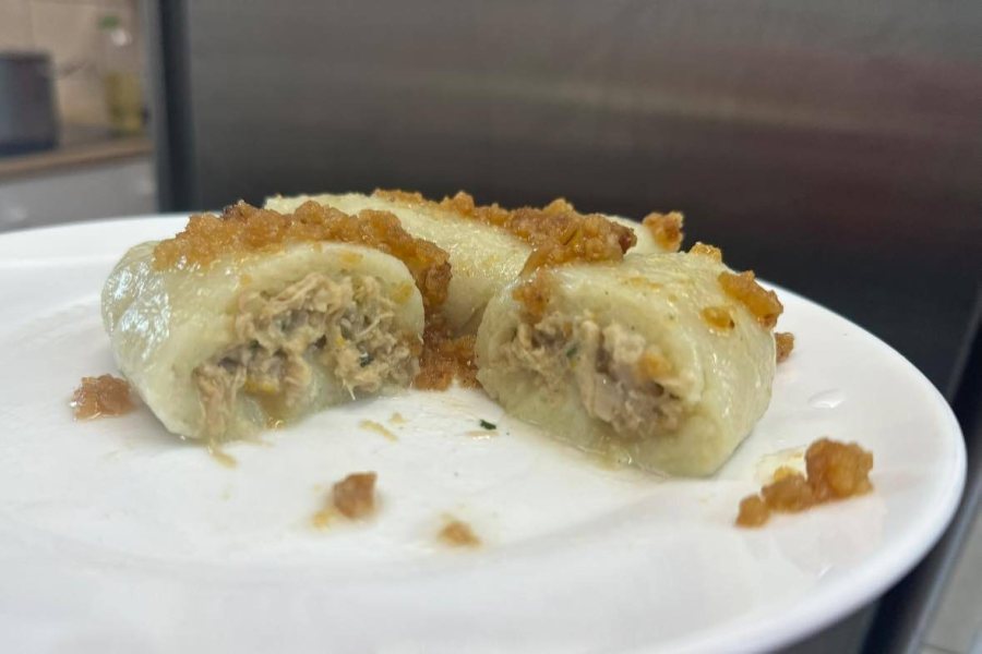 Latem warto tu zajrzeć nie tylko dla kultowych pierogów z jagodami, ale także by spróbować nowości – kartaczy z farszem z szarpanej łopatki wieprzowej, z dodatkiem cebuli, czosnku i pietruszki. Wszystko to delikatnie podsmażone na masełku, otulone cienkim, mięciutkim ciastem. Kartacze podawane są ze śmietaną lub złocistą okrasą z cebulki – jak u babci, tylko lepiej!