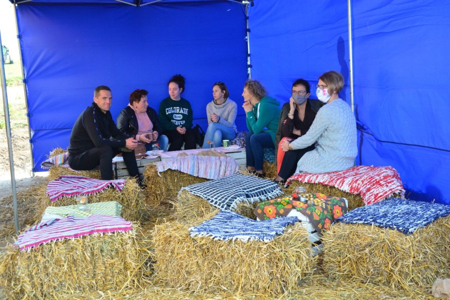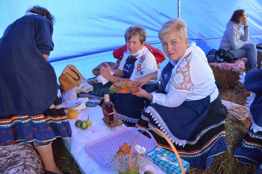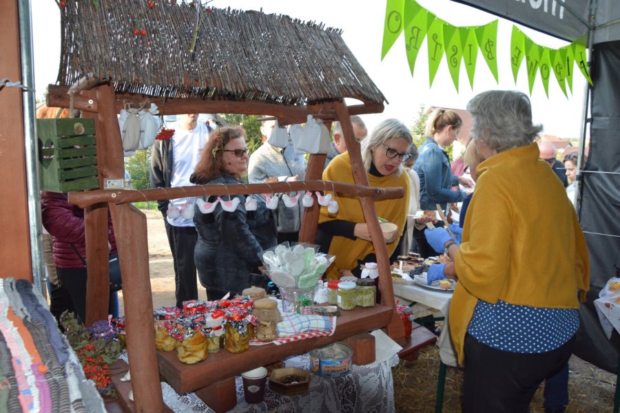 Jak już powiedziałam – przyjemność. Tę dają nam wycieczki, na które wyjeżdżamy, jeśli uda nam się pozyskać środki z zewnątrz. Uważamy bowiem, że jak się choćby na krótko z domu wyjedzie, tym chętniej do niego wraca. Poza tym albo głównie jednak staramy się o to, by organizować wydarzenia, w których mogą uczestniczyć wszyscy mieszkańcy wsi. Taką właśnie imprezą był sobotni, szczególny piknik, zorganizowany wspólnie z sołtysem i radą sołecką. Szczególny, bo był połączony z otwarciem tego miejsca rekreacyjnego z wiatą. Była „wstęga” upleciona z nawłoci, przecinana sierpem, jak na wieś przystało. Były konkursy, w tym nawet kulinarny, muzyka i w ogóle dużo fajnej, radosnej zabawy dla małych i dużych. Było wiele ciekawych stoisk, a wśród gości inne koła gospodyń wiejskich, nie tylko z naszej gminy. W otwarciu uczestniczył też wójt, któremu to miejsce zawdzięczamy.