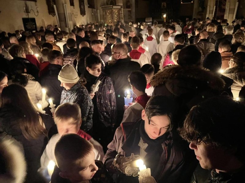 Przypomniał, że liturgia Wigilii Paschalnej rozpoczyna się po zmroku, co symbolizuje zwycięstwo światłości nad ciemnością.