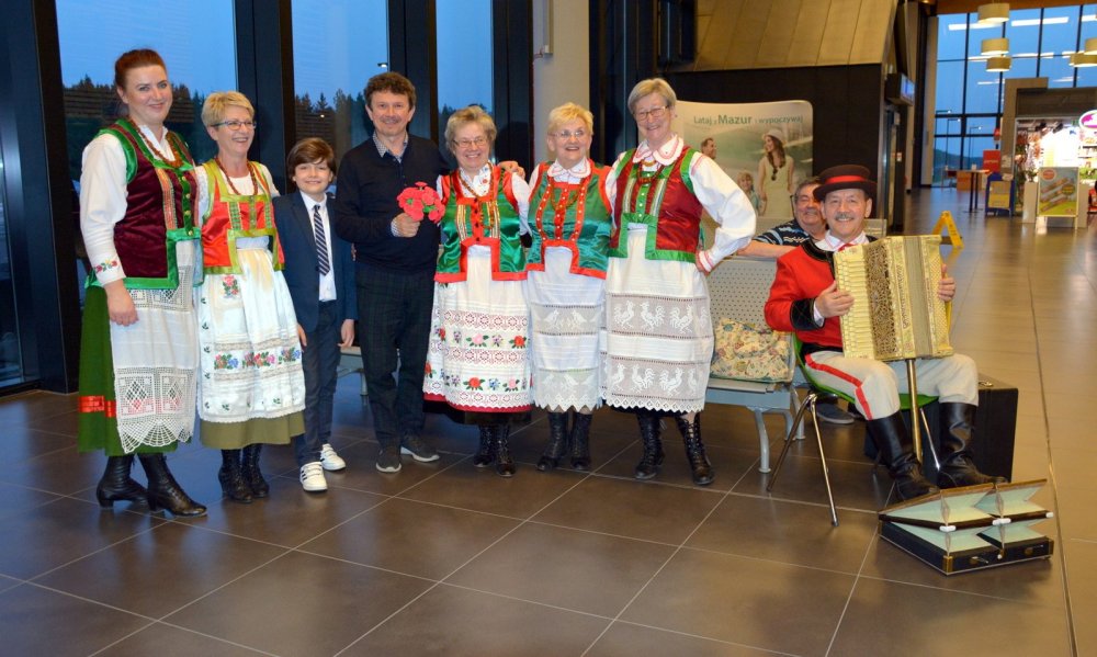 Inauguracyjny, czwartkowy lot, miał szczególną oprawę – koncertową za sprawą Jacka Wójcickiego, który dzień wcześniej wystąpił w olsztyńskiej filharmonii i za sprawą szczycieńskiego „Wystka”, który towarzyszył pasażerom odlatującym do Krakowa, śpiewając m.in. piosenki, wykonywane przez... Jacka Wojcickiego.