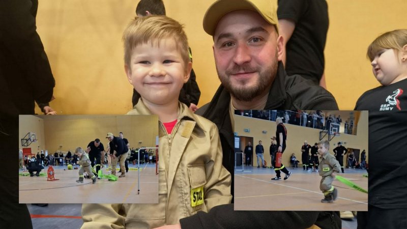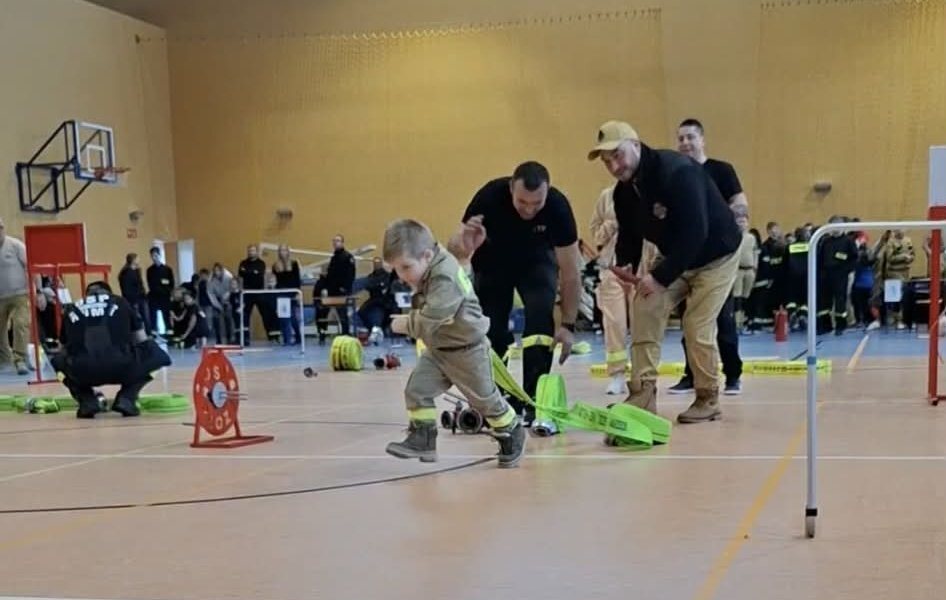 Zawody były częścią rywalizacji dziecięcych i młodzieżowych drużyn pożarniczych z terenu powiatu szczycieńskiego. Były konkurencje, stoper, doping i emocje. W tym wszystkim pojawił się Krzyś – najmłodszy uczestnik, związany z OSP Dąbrowy. Trzy lata, hełm na głowie, strażacka koszulka i pełne skupienie.
