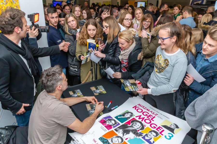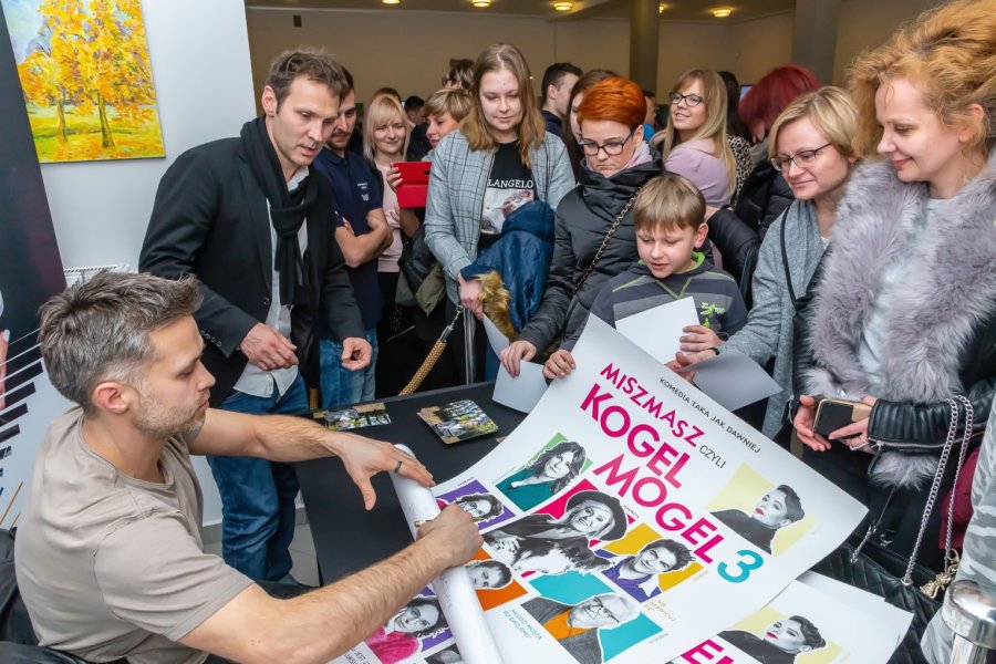 Na spotkanie z Maciejem Zakościelnym przybyła potężna rzesza jego fanów. Głównie płci nadobnej. Kolejka po autograf nie miała końca, a chętnych do wspólnego zdjęcia też było bez liku. Nic dziwnego, bo aktor cieszy się zasłużoną popularnością. Okazją była emisja najnowszej produkcji filmowej z jego udziałem - komedii „Miszmasz czyli kogel-mogel 3”, którą do szczycieńskiego MDK-u przywiozło Objazdowe Kino Visa. „Tygodnik Szczytno” miał możliwość przeprowadzenia krótkiego wywiadu.