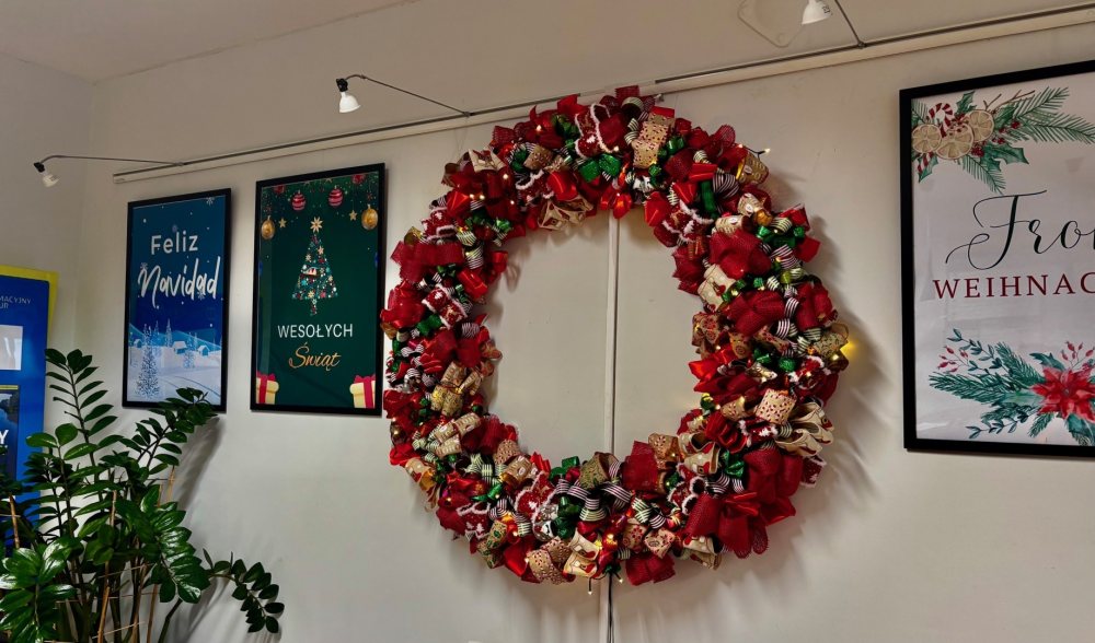 Największą uwagę przyciąga imponujący wianek w holu urzędu. Został on wykonany z aż 800 starannie przygotowanych kokard. Precyzyjna praca i zaangażowanie bibliotekarzy stworzyły wyjątkową ozdobę, która stała się symbolem tegorocznego świątecznego wystroju.
