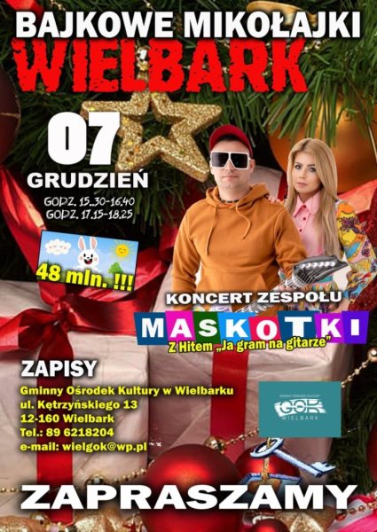 Z kolei w czwartek, 7 grudnia w GOK Wielbark odbędą się Bajkowe Mikołajki i koncert zespołu Maskotki z hitem "Ja gram na gitarze”. Zapisy pod numerem telefonu 89 621 82 04 lub osobiście w GOK.