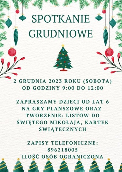 W sobotę, 2 grudnia w GBP w Wielbarku odbędą się warsztaty z gier planszowych oraz z tworzenia kartek świątecznych i pisanie listów do świętego Mikołaja. Zajęcia będą odbywały się od godz. 9 do 12. Zapisy chętnych pod numerem telefonu - 89 621 80 05.