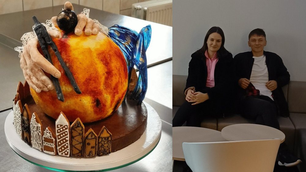 Na zdjęciu tort przygotowany przez Martę i Pawła pod okiem nauczycielek Małgorzaty Polak i Magdy Talarek - Słońce wstrzymane przez ręce Kopernika.