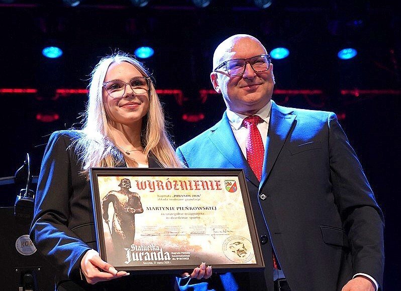 Ma 17 lat, trenuje od dziecka i dziś jest jedną z najmocniejszych zawodniczek w kraju. Podczas gali Jurandy 2026 wyróżnienie w dziedzinie sportu trafiło do Martyny Pieńkowskiej – mieszkanki Płozów i zawodniczki KS Płetwal Szczytno.