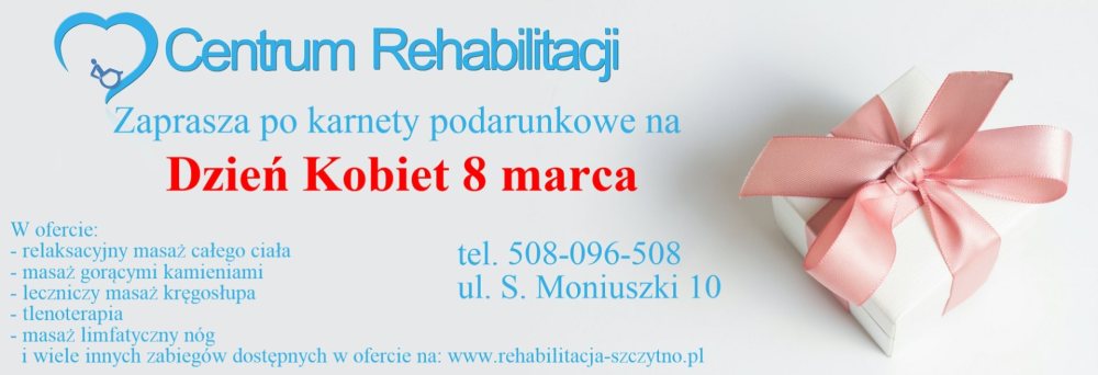 Promocja. Zbliża się Dzień Kobiet - dzień, który wyróżnia wszystkie kobiety na świecie. To czas, w którym można wyrazić szacunek i wdzięczność dla wszystkich Pań, które wprowadzają piękno, dobroć i mądrość do naszego życia. Jeśli szukasz wyjątkowego prezentu dla swojej ukochanej, przyjaciółki czy mamy, to karnet do Centrum Rehabilitacji w Szczytnie jest idealnym wyborem!