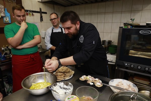 W sumie aż trzydzieści, przygotowywanych po dziesięć każdego dnia szkolenia. W pierwszym dniu, już 2 października, będziemy "pichcić" m.in.: kartoflaka z sosem grzybowym i pudrem z suszonych grzybów, karmuszkę, kuch z kiezą, zupę piwną, zapiekankę z kaszy jaglanej z owocami suszonymi/wędzoną śmietana i sosem malinowym, podpłomyki z wędzonym pstrągiem, kozim serkiem i marynowaną cukinią, porkę z perdutą na szpinaku i zsiadłym mlekiem, szarlotkę, królika duszonego w kwasie chlebowym/kasza owsiana z żurawiną i orzechami,kotlety z kaszy orkiszowej z sosem grzybowym i puree z pieczonych buraków. Niektóre z nazw tych potraw brzmią bardzo tajemniczo, tym bardziej więc warto się przekonać, co te nazwy w sobie kryją.