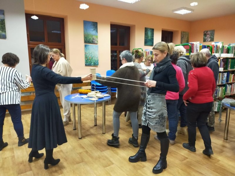 W trakcie wieczoru uczestnicy mieli okazję zapoznać się z tajnikami tradycyjnego rzemiosła tkactwa, które dziś już niemal kompletnie zanikło. Pani Beata nie tylko dzieliła się swoim doświadczeniem, ale również pokazywała, jakie skarby kryją się w kreatywnym świcie mazurskiego tkactwa.