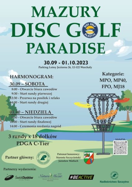 Mazury Disc Golf Paradise to pierwszy sankcjonowany PDGA C-tier turniej disc golfa w województwie Warmińsko- Mazurskim, którego organizatorem jest Klub Sportowy "Ultimate Frisbee Olsztyn" przy współpracy z Lasami Państwowymi, które są głównym partnerem wydarzenia.