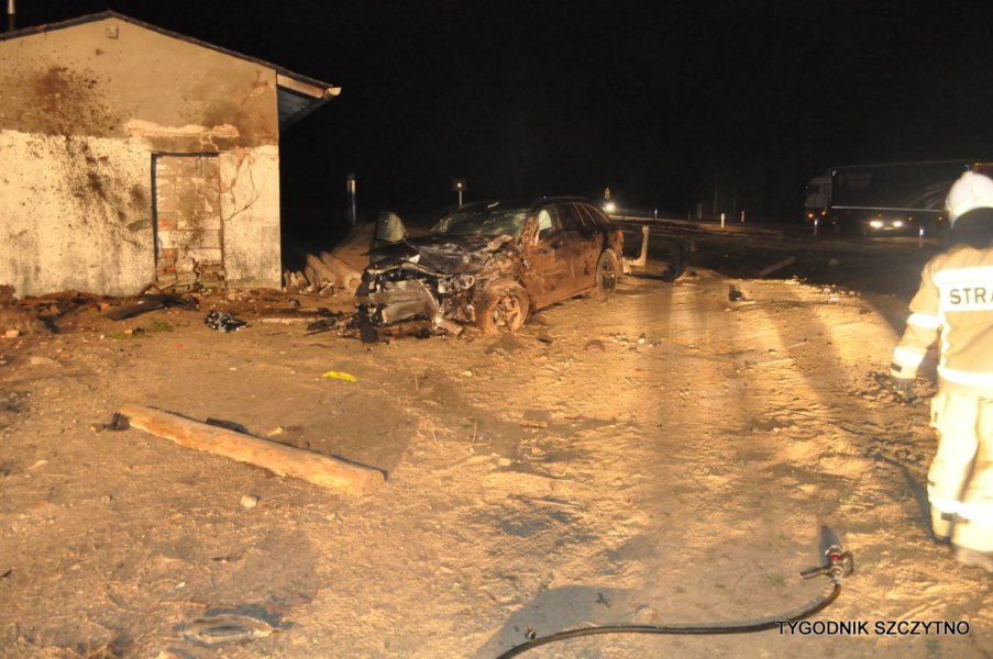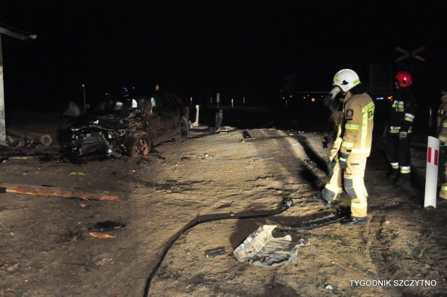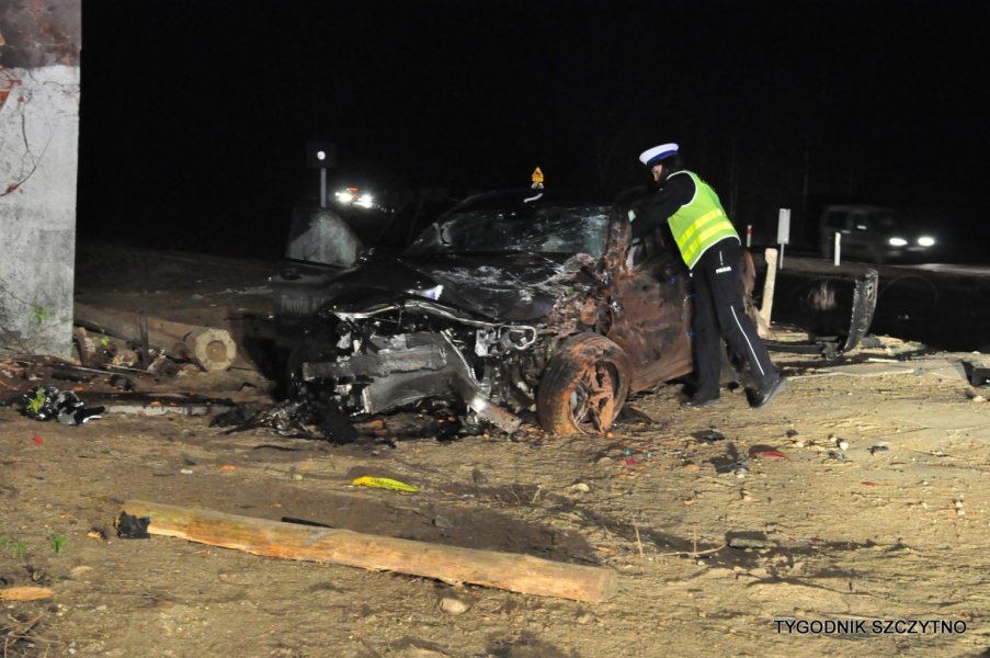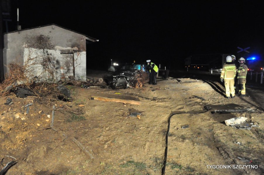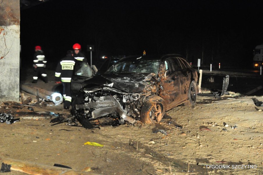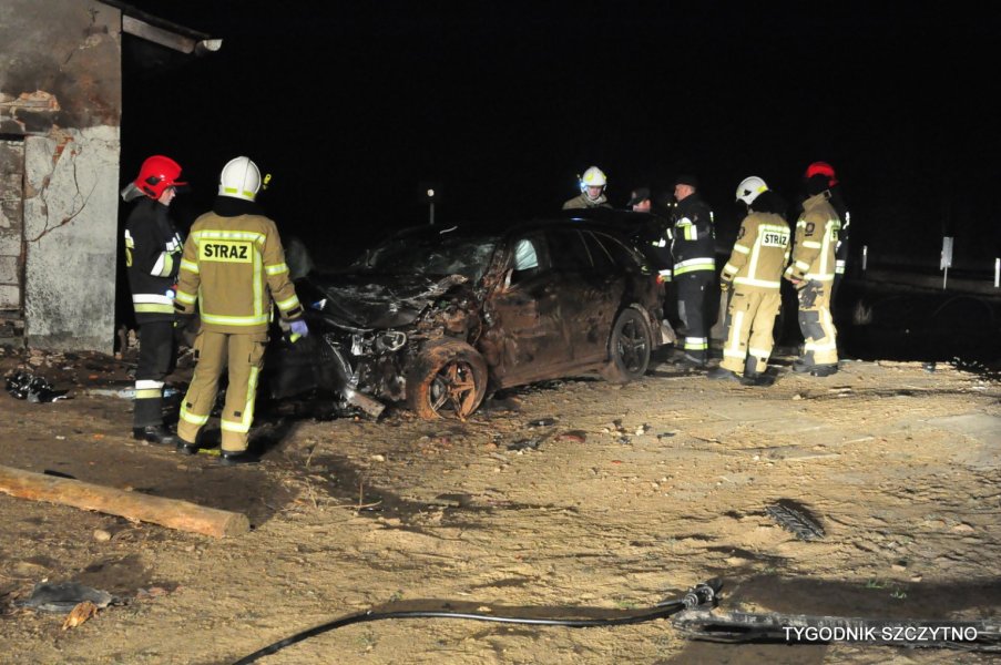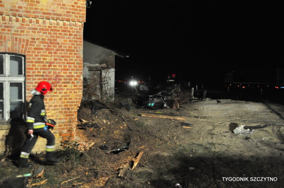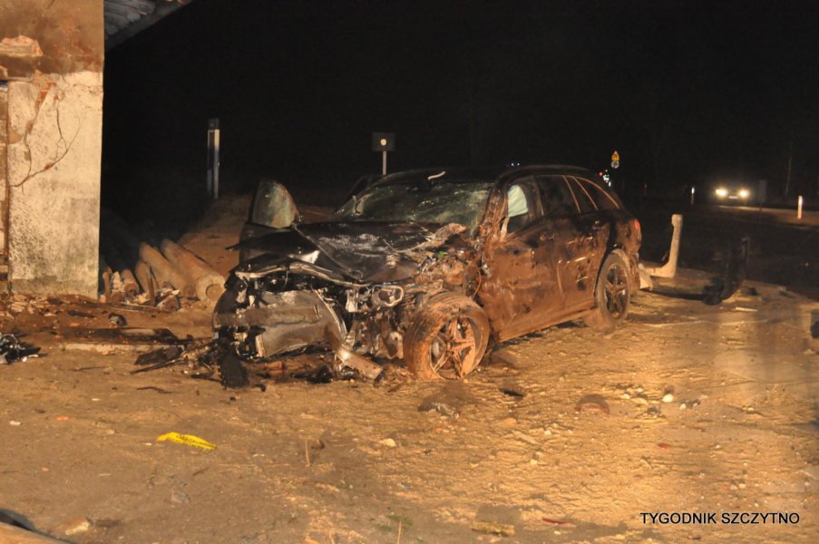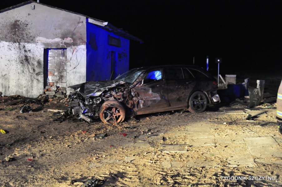 Do tego groźnego wypadku doszło dziś (poniedziałek, 26 listopada) około godziny 17. Z pierwszych ustaleń policji wynika, że kierowca jechał najprawdopodobniej zbyt szybko. Nie zdołał wyhamować auta przed przejazdem kolejowym i tak zwaną drogową „eską”. Samochód przeciął jezdnię, wyleciał z drogi, ściął słup i zatrzymał się na budynku sąsiadującym z peronem stacji PKP Jeruty.