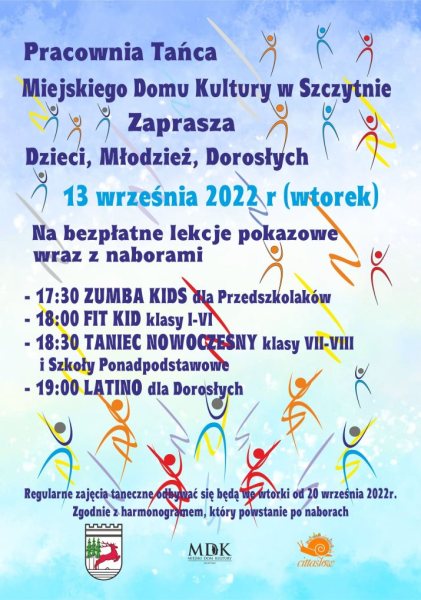 Wakacje za nami. Ruszają zapisy na zajęcia plastyczne, taneczne oraz rzeźby w Miejskim Domu Kultury w Szczytnie. Sprawdź szczegóły.