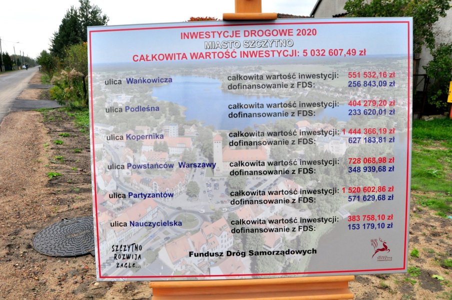 Inwestycja został wykonana w ramach Funduszu Dróg Samorządowych. Szczycieński samorządowcom z FDS udało się pozyskać na drogi ponad 5 mln zł. Dzięki temu wsparciu przebudowano między innymi ulice: Wańkowicza, Podleśną, Powstańców Warszawy, Partyzantów, czy Nauczycielską.