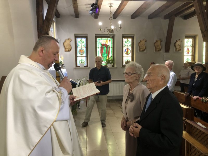 W sobotę, 17 sierpnia w kościele Matki Bożej Częstochowskiej w Szymanach odbyła się msza święta w intencji jubilatów. W obecności zgromadzonych bliskich małżonkowie, jak przed laty, odnowili także przyrzeczenia ślubne.
