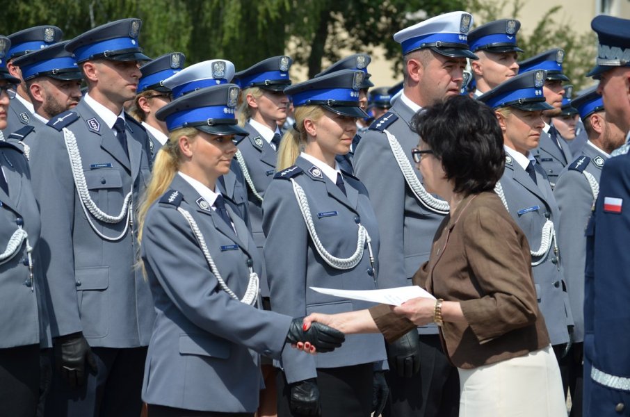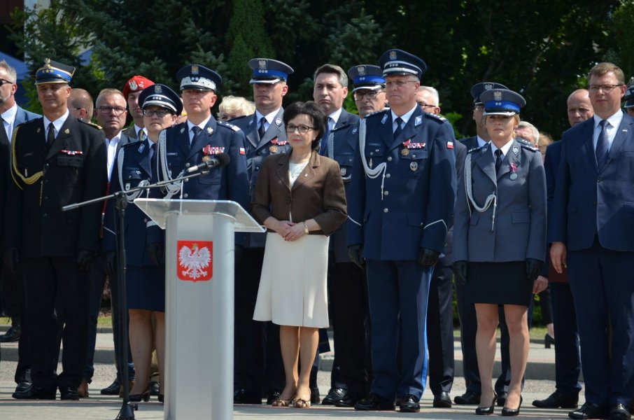 Jako pierwsza głos zabrał Pani Elżbieta Witek – Minister Spraw Wewnętrznych i Administracji, która wyraziła słowa gratulacji oraz podziękowania dla funkcjonariuszy za ich codzienną służbę. Pani Minister podziękowała również kadrze, policjantom i pracownikom Wyższej Szkoły Policji w Szczytnie, nie tylko za przekazywanie wiedzy i umiejętności niezbędnej do pełnienia codziennej służby, ale również za przekazywanie najważniejszych wartości i kształtowanie patriotycznych postaw.