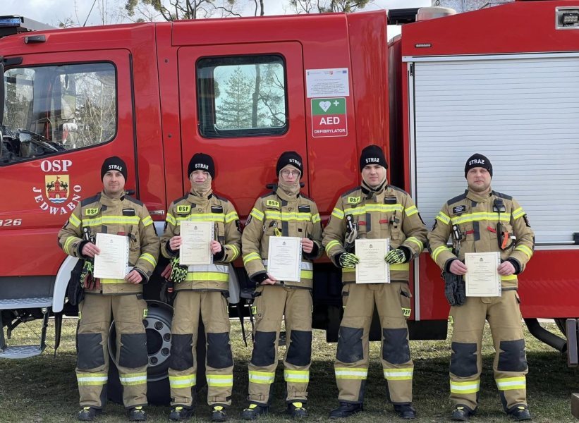 W sobotę pięciu druhów z OSP Jedwabno: Jacek Brzozowski, Kacper Deptuła, Piotr Maciejczuk, Piotr Podlecki oraz Michał Wojciechowski ukończyło egzamin z zakresu działań przeciwpowodziowych i ratownictwa na wodach z wynikiem pozytywnym. To wyjątkowy sukces dla strażaków z Jedwabna oraz dowód na ich zaangażowanie i determinację w rozwijaniu swoich umiejętności.
