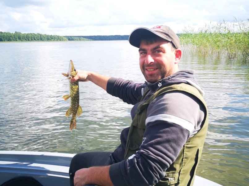 - Na Wałpuszu byłem drugi raz – mówi. - Postawiłem na głębokość 4-5 metrów oraz gumową 14-centymetrową przynętę. 77-centymetrowy szczupak to już fajna zdobycz, choć zdarzały się większe.