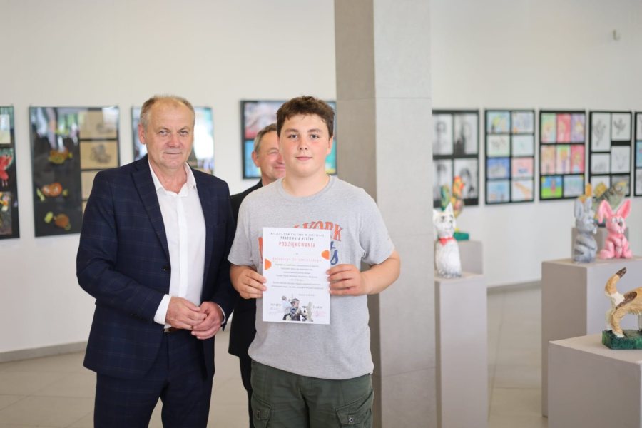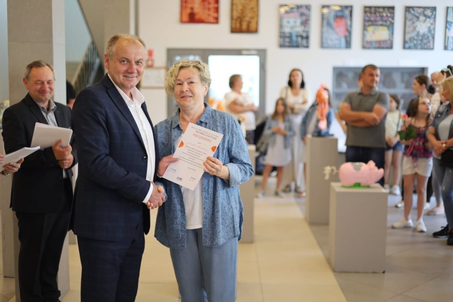Podczas wernisażu burmistrz Krzysztof Mańkowski wręczył wszystkim uczestnikom obu pracowni pamiątkowe wyróżnienia i podziękowania za udział w zajęciach.