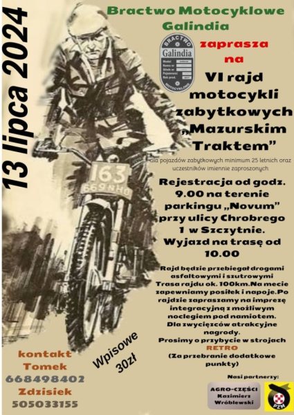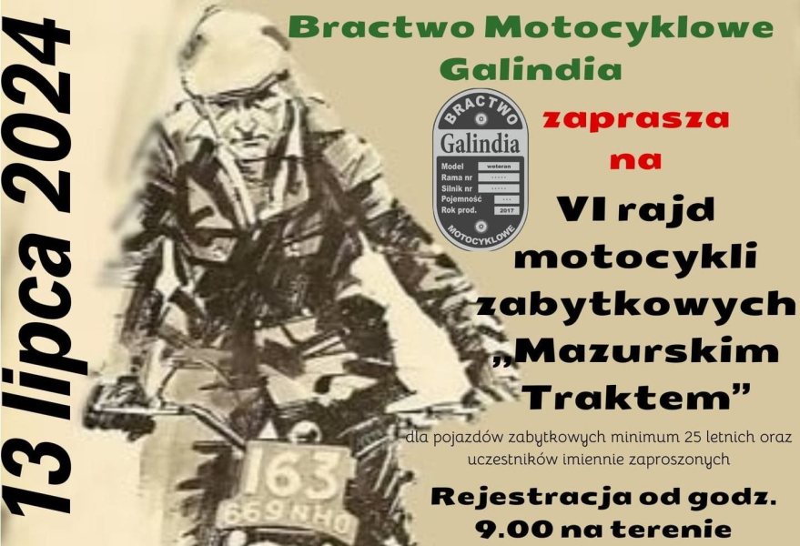 Bractwo Motocyklowe Galindia zaprasza wszystkich miłośników klasycznych motocykli na VI Rajd Motocykli Zabytkowych „Mazurskim Traktem”.