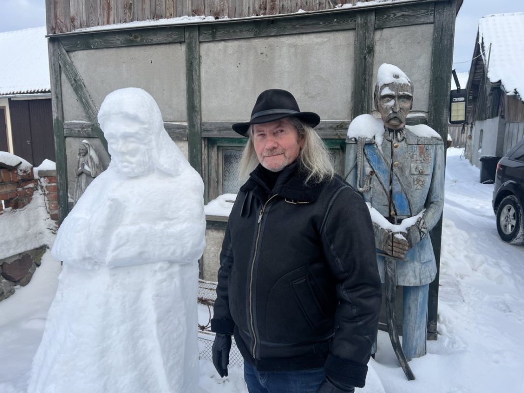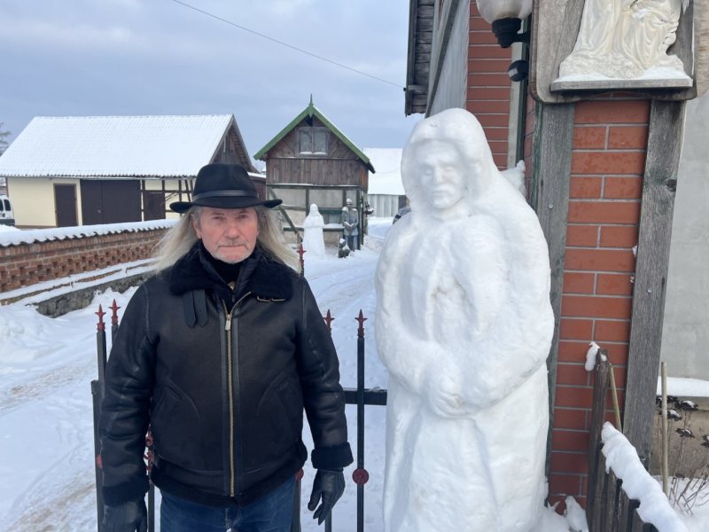 Zamiast kląć na mróz i zaspy, on bierze dłuto. Zygmunt Rząp z Olszyn znów wykorzystał zimę po swojemu. Na własnej posesji wyrzeźbił w śniegu i lodzie postacie Jezusa i Maryi. – Trzeba łapać okazje. W życiu też – mówi z uśmiechem.