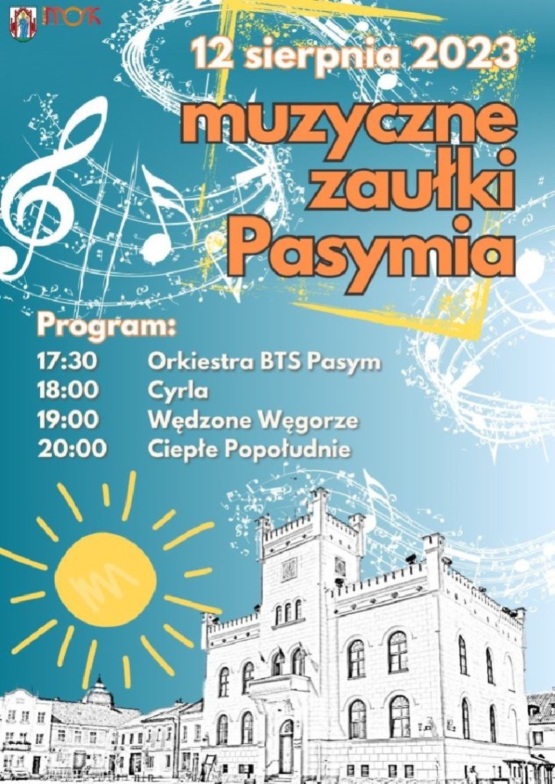 Muzyczne Zaułki Pasymia – to wyjątkowe wydarzanie już w sobotę, 12 sierpnia. - Czekamy na Was na pasymskim Rynku wraz z lokalnymi (i nie tylko!) muzykami - zachęcają pracownicy MOK w Pasymiu.