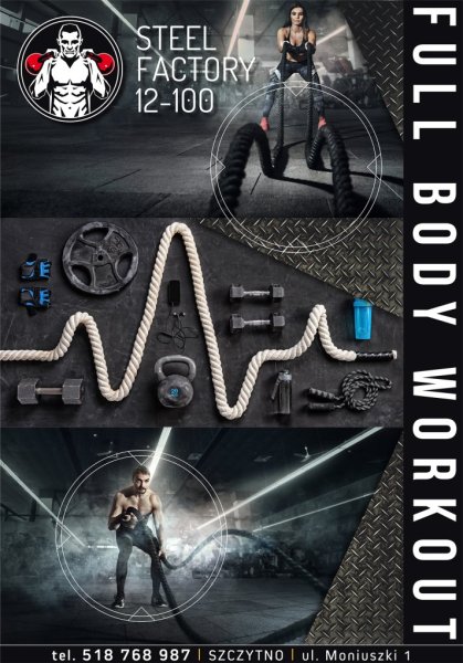Full Body Workout – trening obwodowy, stacyjny. Pracujemy tutaj na obciążeniu zewnętrznym w postaci hantli, sztang, odważników oraz z użyciem akcesoriów w postaci: lin, skakanek, piłek i innych – pracujemy na specjalnie ustawionych stacjach.