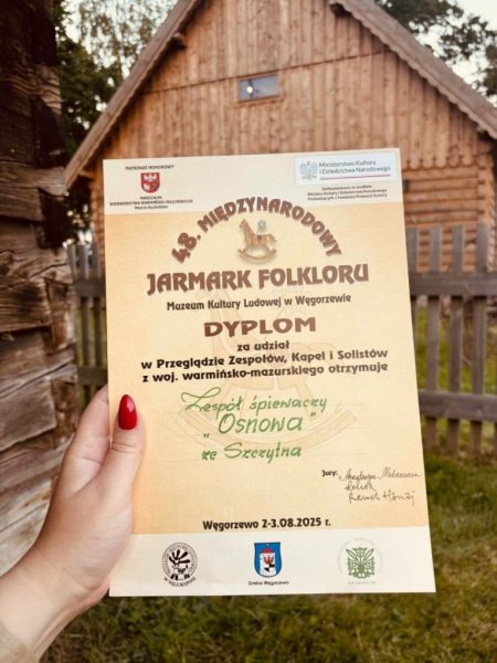 Zespół Osnowa, wykonujący pieśni mazurskie, ma powód do dumy. Podczas 48. Międzynarodowego Jarmarku Folkloru w Węgorzewie grupa zdobyła uznanie jury i została wytypowana do udziału w jubileuszowej, 60. edycji Ogólnopolskiego Festiwalu Kapel i Śpiewaków Ludowych w Kazimierzu nad Wisłą.