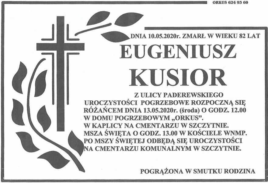 W niedzielę, 10 maja zmarł Eugeniusz Kusior, działacz samorządowy, wieloletni prezes struktur powiatowych Polskiego Stronnictwa Ludowego oraz Związku Zawodowego „Ojczyzna” w województwie warmińsko-mazurskim. Miał 82 lata.