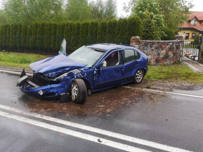 W sobotę (21.05.2022 r.) w miejscowości Dłużek, 31-letni kierowca Forda nie dostosował prędkości do warunków panujących na drodze w wyniku, czego zjechał na przeciwległy pas ruchu i uderzył w drewniany płot posesji oraz betonowy słup. Na szczęście 31-letek nie odniósł obrażeń.