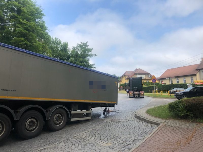 W Szczytnie doszło do kolejnego niebezpiecznego incydentu z udziałem samochodu ciężarowego. - Od ciągnika siodłowego odpięła się naczepa – zaalarmował naszą redakcję czytelnik „Tygodnika Szczytno”. - Na szczęście spadła na kostkę brukową i pozostała na miejscu. Nikt nie ucierpiał.
