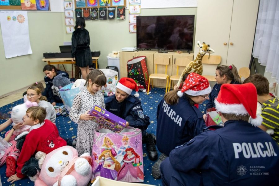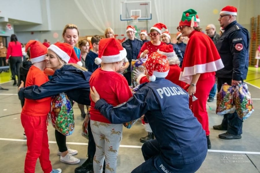 Święta to czas dzielenia się radością i wsparciem. W tym duchu 19 grudnia studenci, słuchacze oraz kadra Akademii Policji w Szczytnie wspólnie z „niebieskim” Świętym Mikołajem odwiedzili Specjalny Ośrodek Szkolno-Wychowawczy im. Janusza Korczaka oraz Świetlicę Środowiskową w Szczytnie. W ramach akcji obdarowano nie tylko podopiecznych placówek, ale także rodziny zmarłych policjantów.