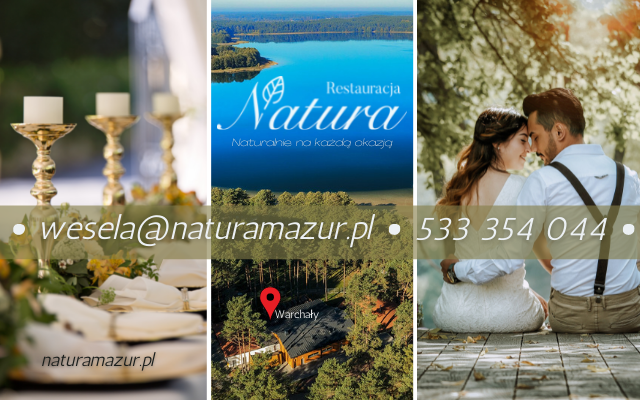 Promocja. Każda para pragnie, by dzień jej ślubu i wesela był – jak wybranek czy wybranka serca – jedyny, najpiękniejszy i wyjątkowy. Musi łączyć w sobie tradycję i oryginalność. Musi być zwiastunem przyszłego, wspólnego życia, równie pełnego radości i szczęścia. Dla młodych rodziców równie wyjątkowy musi być dzień chrztu ich upragnionego dziecka, dla nie całkiem już Młodych Par – kolejna rocznica ślubu. Wszystkie takie najważniejsze dni w życiu można i warto spędzić w Restauracji Natura w Warchałach. Bo tu organizacją każdej uroczystości zajmą się profesjonaliści, którzy potrafią spełnić wszelkie marzenia.