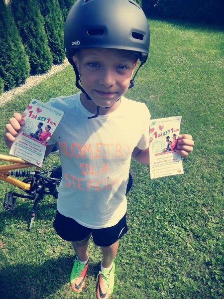 Wspólnie z mamą zaangażował się też w akcję Banku Spółdzielczego w Szczytnie „Kilometry dla Stefanka”.
