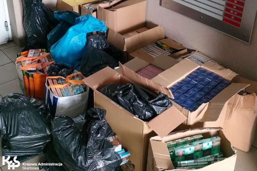 Zajęta kontrabanda to papierosy różnych marek bez polskich znaków akcyzy.