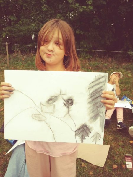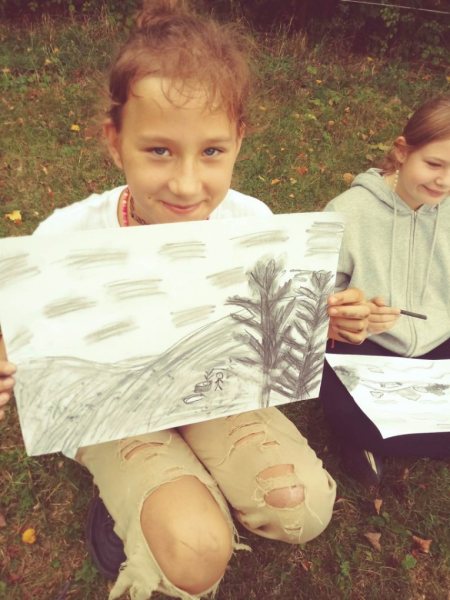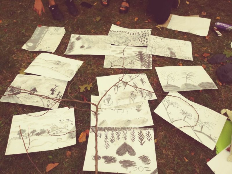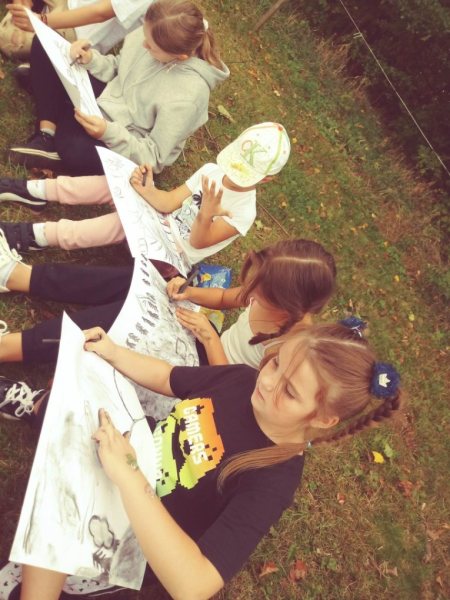 Dzieci przy użyciu rysowniczego węgla tworzyły naprawdę niezwykłe prace. Zaangażowanie było widać na dłoniach i twarzach nieco przybrudzonych od rysowniczego węgla.