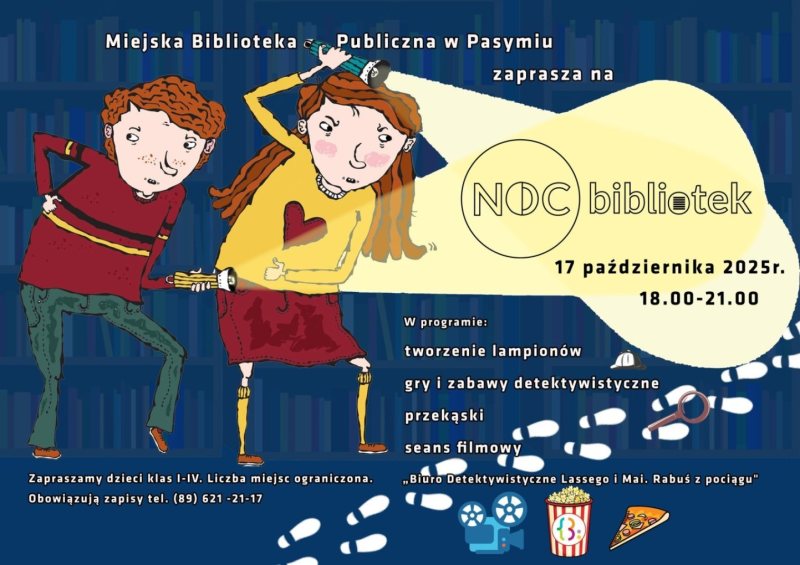W piątek, 17 października, Miejska Biblioteka Publiczna w Pasymiu zamieni się w miejsce pełne tajemnic i przygód. Od godziny 18:00 do 21:00 dzieci z klas I–IV będą mogły przeżyć wyjątkowy wieczór w ramach ogólnopolskiej akcji „Noc Bibliotek”.