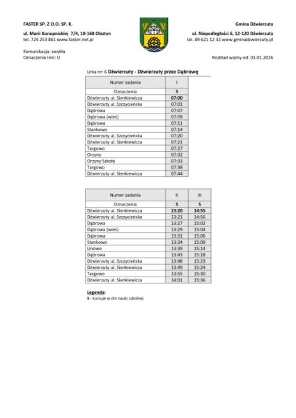 Linia nr 6 - Dźwierzuty - Dąbrowa - Dźwierzuty