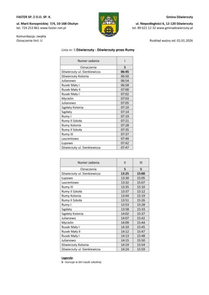 Linia nr 5 - Dźwierzuty - Rumy - Dźwierzuty