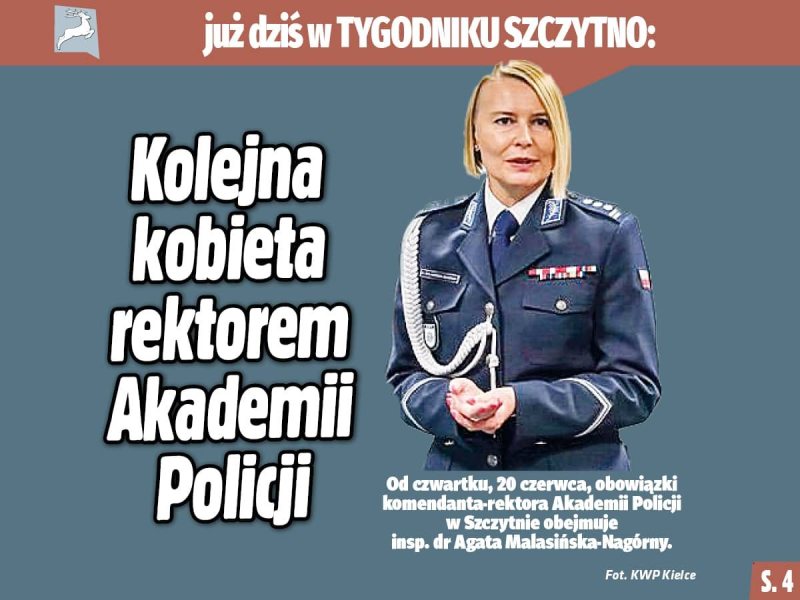 Od czwartku, 20 czerwca, inspektor dr Agata Malasińska-Nagórny obejmuje obowiązki komendanta-rektora Akademii Policji w Szczytnie. To już kolejna kobieta na tym stanowisku. Więcej o jej planach i wizji na stronie 4.