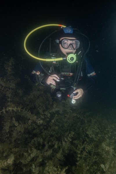 Nurkuję głównie w Jeziorze Leleskim. Zanurzałam się też w innych jeziorach, ale Leleskie jest bezkonkurencyjne. Trudno to opisać. Pod wodą są przepiękne łąki, czyli całe połacie wodnych roślin. Co ciekawe, ryby przed nami nie uciekają. Szczególnie pięknie i ciekawie jest nocą. Na przykład w jednym miejscu jeziora mieszka lin, jakieś 30 cm długości. Jest tak leniwy, że można go wziąć w dłonie, przenieść w inne miejsce, przytrzymać, zrobić zdjęcie i położyć z powrotem na jego legowisku. Nie dalej jak wczoraj byłam świadkiem, jak mały szczupak złapał o wiele mniejsza rybkę i ją konsumował. Dwa tygodnie temu pierwszy raz w życiu zobaczyłam węgorza, który nie leżał na talerzu.